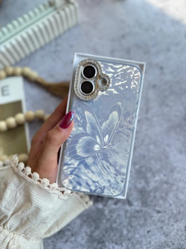 قاب فانتری دخترانه گوشی آیفون 16promax بیرنگ شفاف طرح پروانهای برجسته اکریلیک فانتزی محافظ موبایل