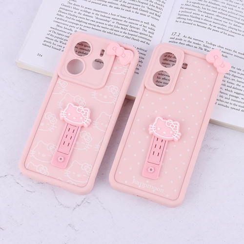 قاب فانتزی دخترانه سولید طرح کیتی استنددار محافظ لنزدار Samsung Galaxy S21 FE /رنگ صورتی