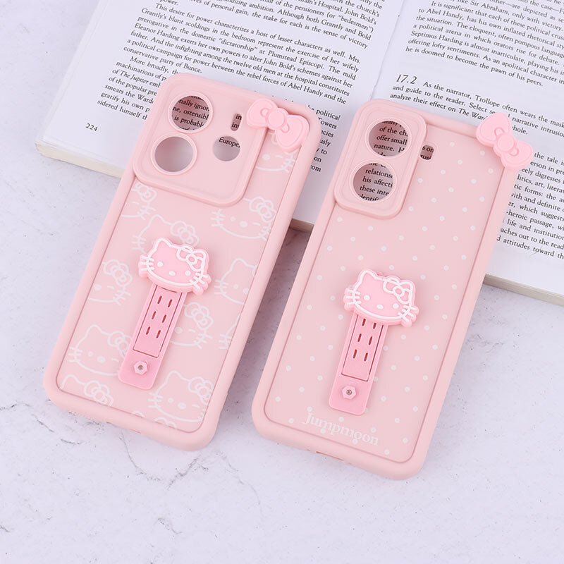 قاب فانتزی دخترانه سولید طرح کیتی استنددار محافظ لنزدار Samsung Galaxy A72 /رنگ صورتی