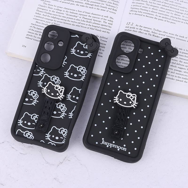 قاب فانتزی دخترانه سولید طرح کیتی استنددار محافظ لنزدار Samsung Galaxy A72 /رنگ مشکی
