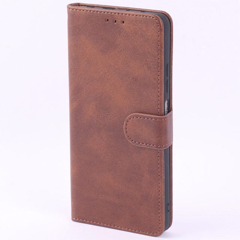 کیف کتابی کلاسوری چرمی مگنتی محافظ لنزدار Xiaomi Redmi Note 12 Pro 5G- رنگ قهوه ای تیره