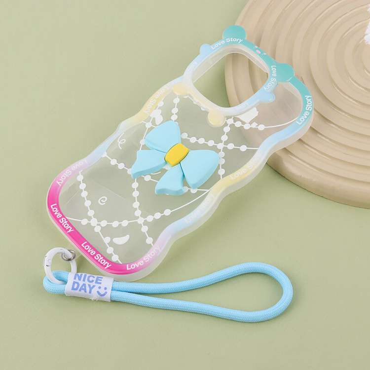 قاب فانتزی دخترانه موج دار طرح پاپیون برجسته آویزدار مناسب آیفون Apple iPhone 14promax