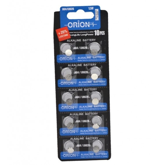 باتری سکه ای اوریون (ORION) مدل Alkaline LR626 AG4 (کارتی 10 تایی)
